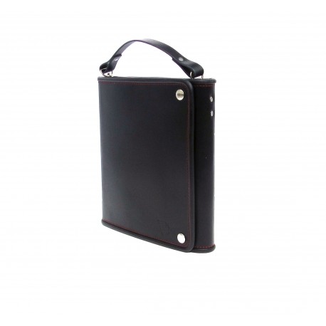 Die wertvollen Geräte finden, fixiert von strapazierfähigen Gummibändern, ihren sicheren Halt auf der abnehmbaren Base. Die Geräte werden außerdem zusätzlich mittels einem in der Tasche vernähten Qualitäts-Microfasertuch geschützt. Die Trageriemen sind aus hochwertigem, vegetabil gegerbtem Büffelleder. Alle Zwirne, Garne und Fäden sind UV-beständig.